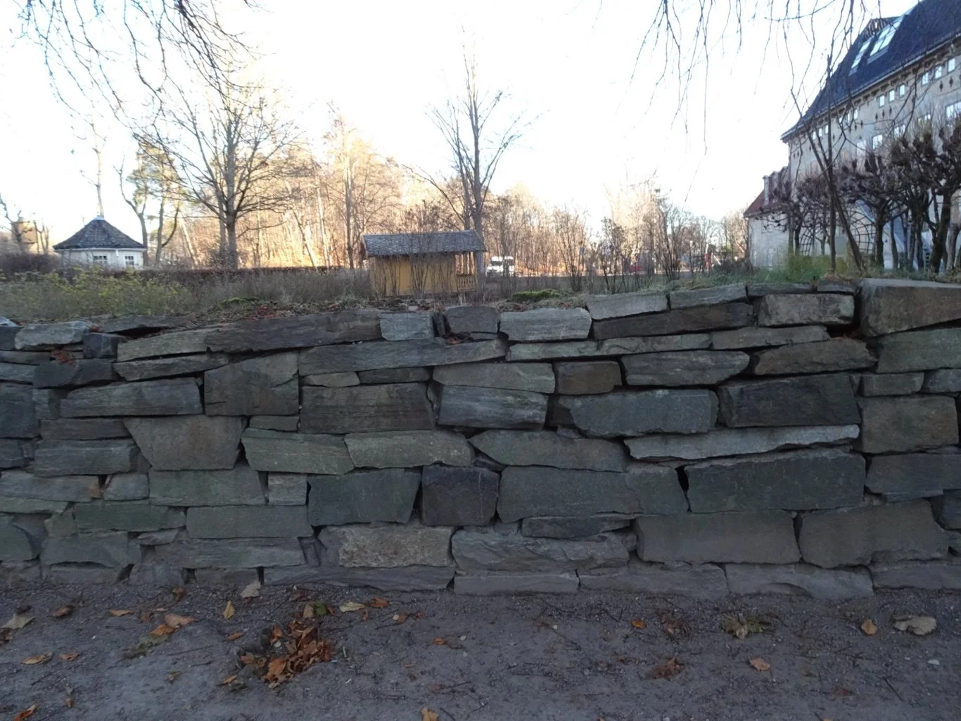 It appeared that we were the only visitors this morning. Off we went, following the path, noticing the stone wall alongside, built in the same way as our walls but from a very different kind of stone.
