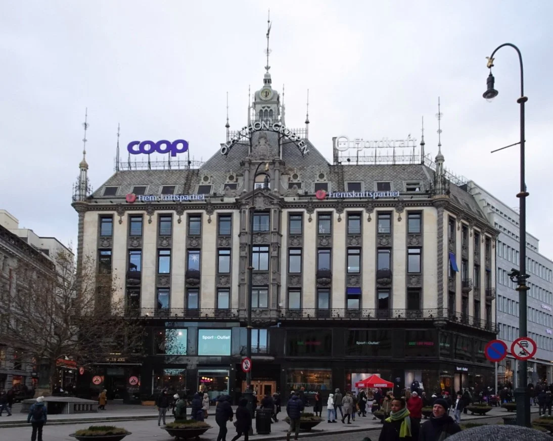 Looking over to see the Hurtigruten ship parked where Splendor had been last Summer, we considered our options. Perhaps we'd walk up to the square with the Christmas Market and take a look around the area near the National Theatre?
