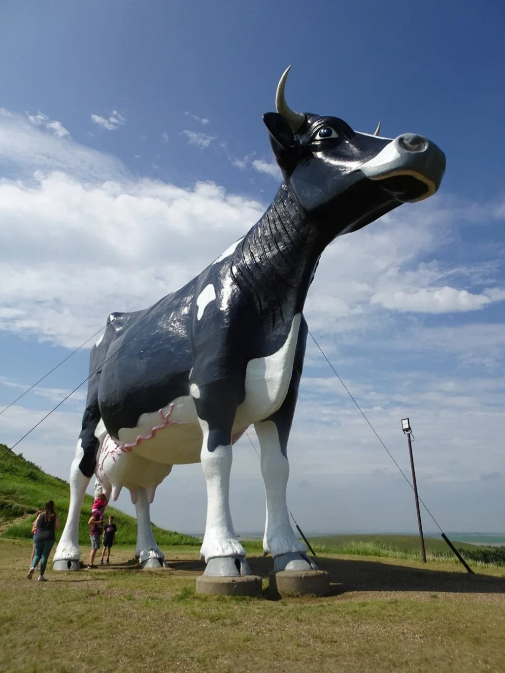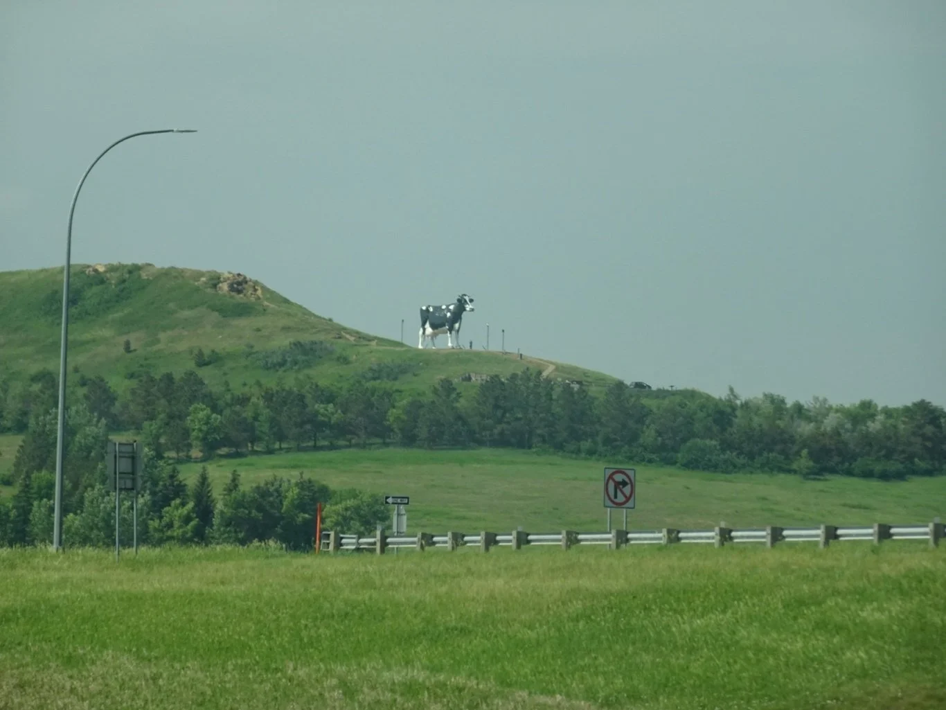 So we rolled…until my Hero noticed “something” on that hillside over there. Is it a windmill or something? Or is it a cow? It certainly was a cow; Salem Sue in fact, the largest Holstein cow in the world.