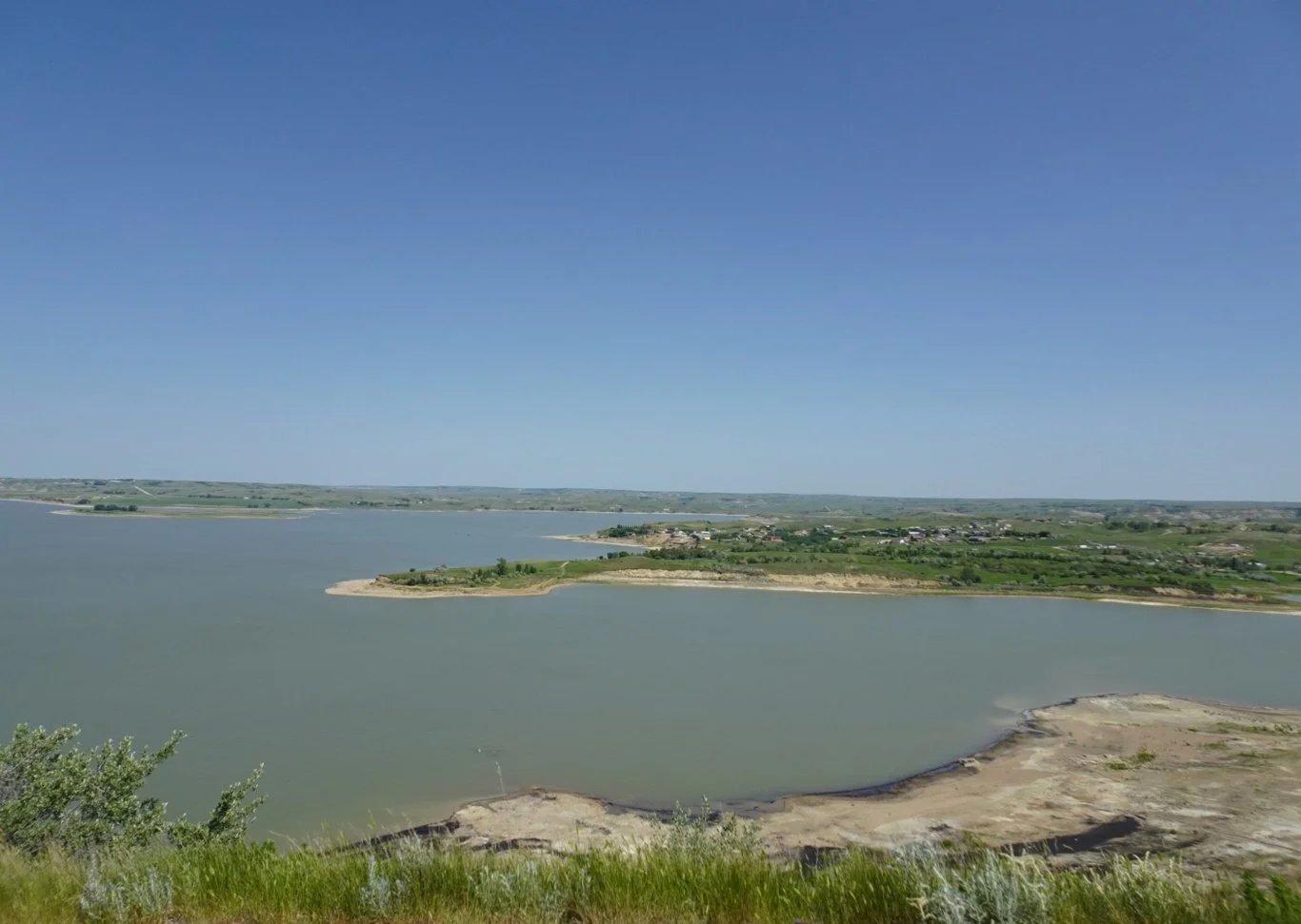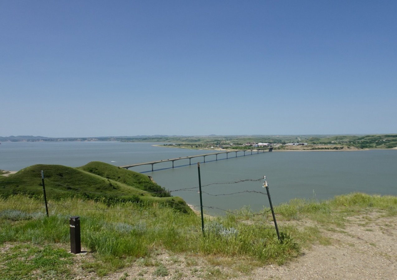 We crossed the bridge and followed the signs to a Lewis and Clark site over on the other side which had a super view of the bridge and a section of Lake Sakakawea, through which the Missouri River flows. This place is called Crow Flies High Butte after the Hidatsa chief of that name.