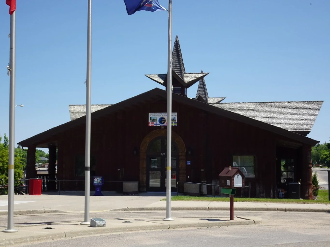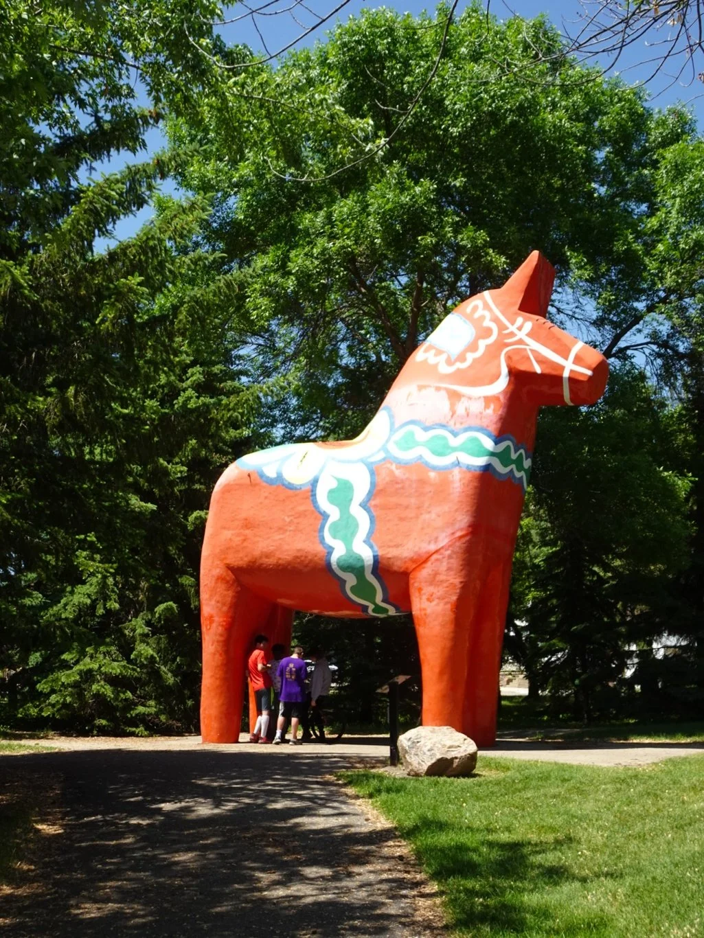 From there, it was a straight run into Minot, crossing the Laurentian Divide once again and encountering Sunday afternoon traffic, which was a little busier than we’ve been used to recently. We were heading for the Scandinavian Heritage Park, where we’d find the Tourist Information office too.