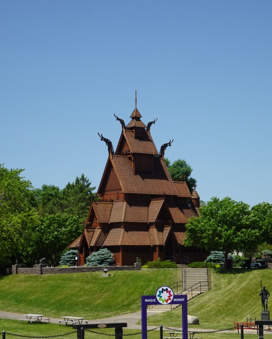 We thought we’d go and take a look at the Stave church regardless. We’d visited the smaller one in Moorhead when we were in Fargo a few days ago and quite fancied seeing this taller, larger variation.