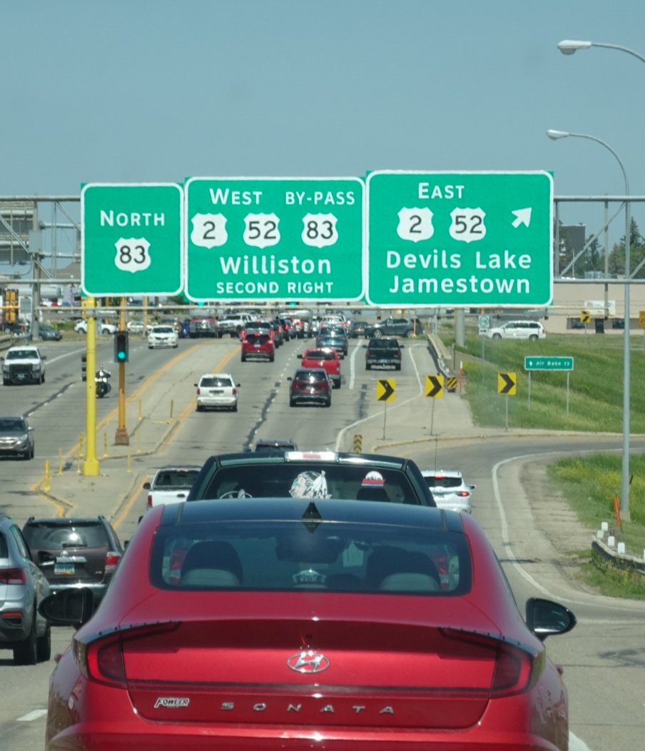 We had a couple more stars on our map and hoped to visit an Interpretive Centre about the Three Affiliated Tribes that Terry had also recommended, but it’s Sunday and it’s closed at weekends. Shame. We’d left the Little Missouri behind and were back into flat farming lands as we entered the Fort Berthold Indian Reservation and turned right onto the ND23 towards Minot (that’s Minot to rhyme with Why Not?)