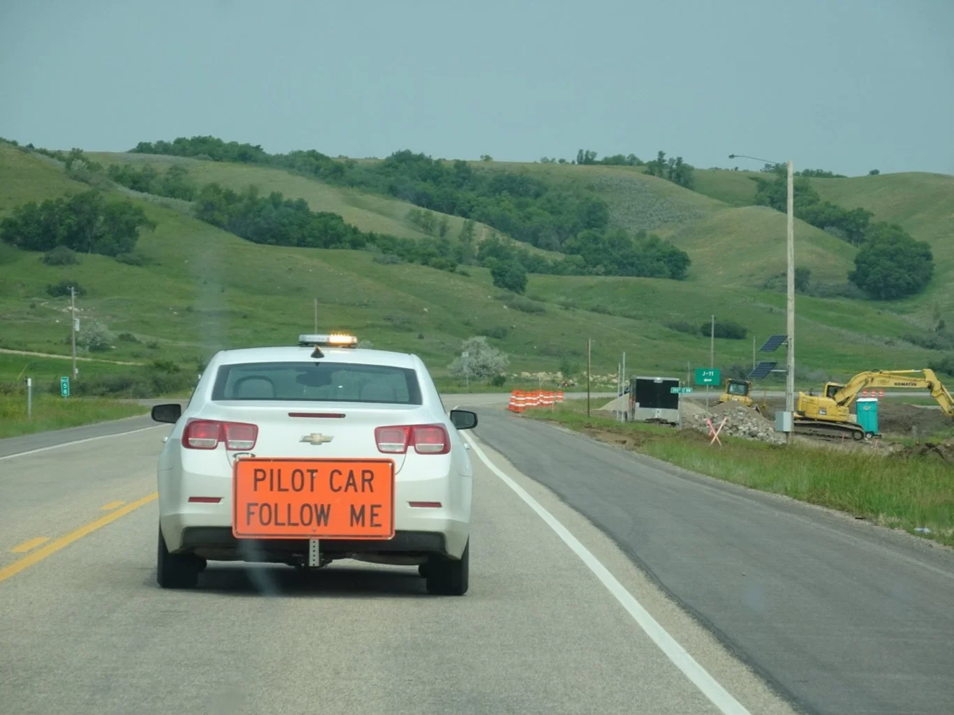 A little further along, a man was standing holding a STOP sign and as we waited, we mused on the task he had been assigned and likened his role to that of Penny Mordaunt in the recent coronation of King Charles III. Eventually, the pilot car arrived and we followed it through the roadworks. All a little excessive, to be honest.