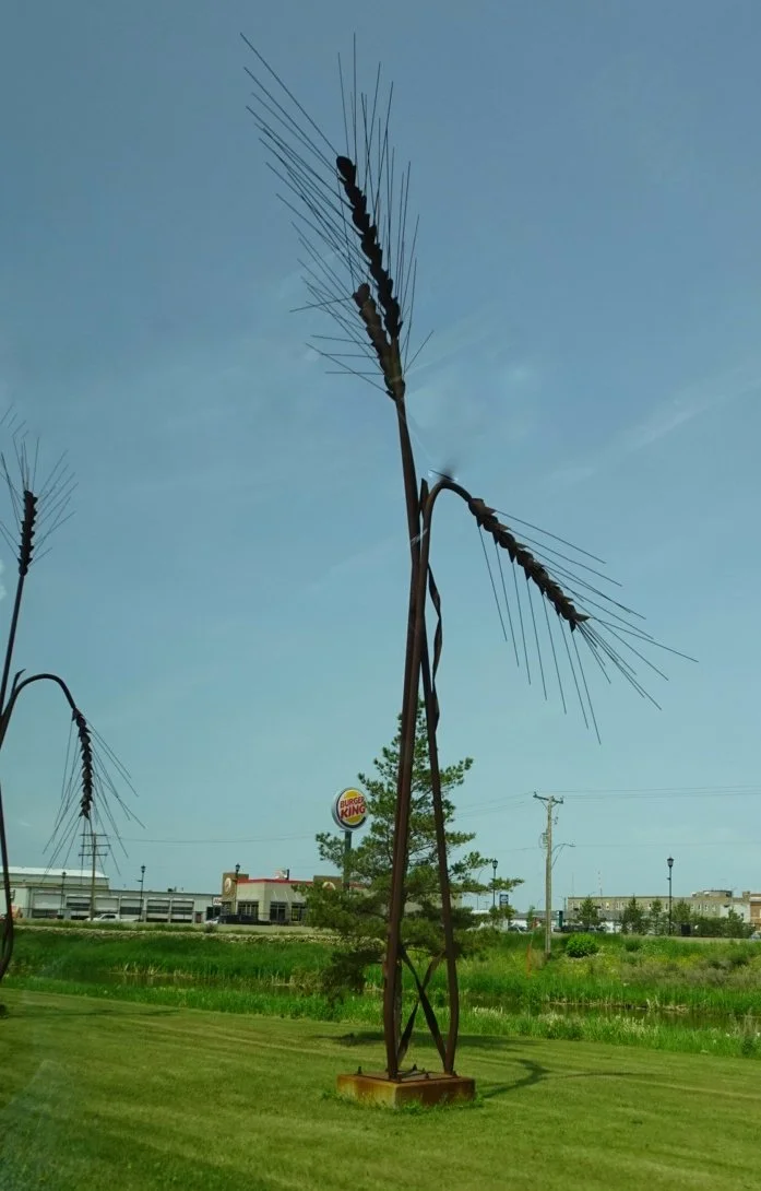 In Weyburn, we passed a “roadside attraction” described as wheat sheaves, though I think that might have been a little exaggeration of something I’d describe as more stalks than sheaves.