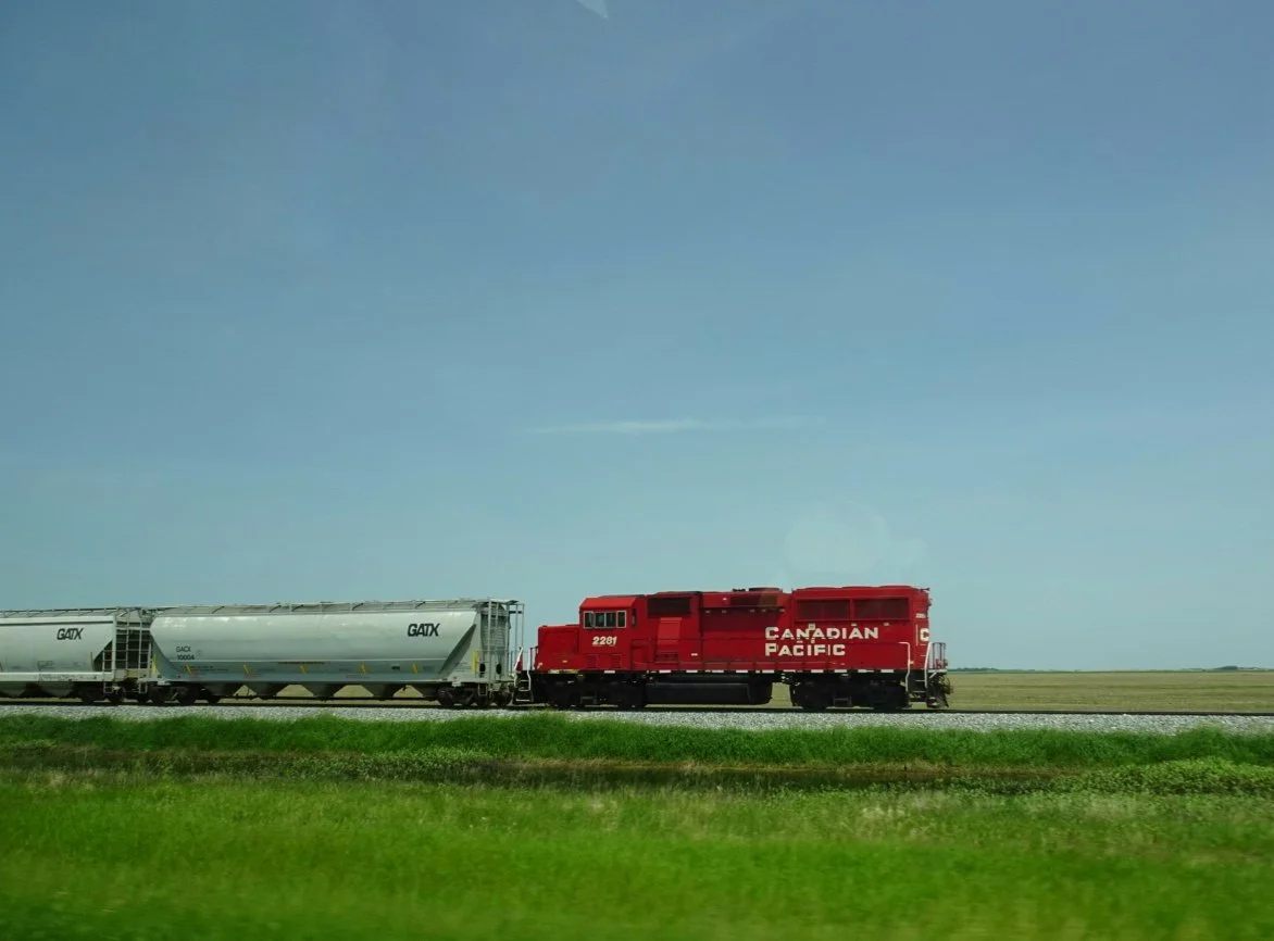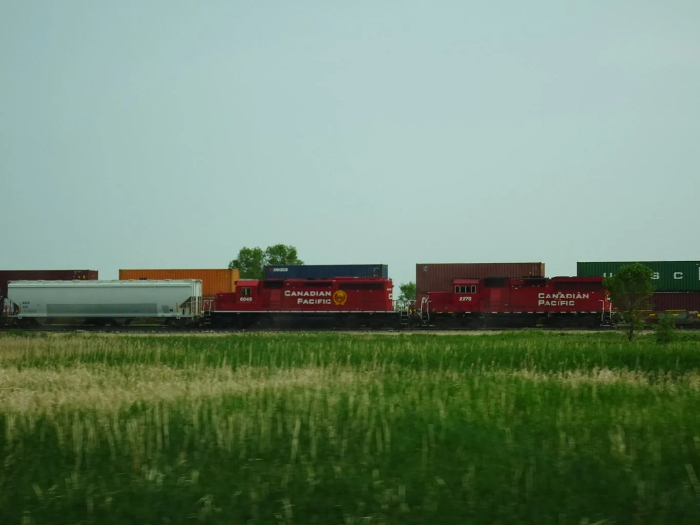 This immensely long engine was hauling wagons loaded with potash from Saskatchewan as were several of the trains we passed by.