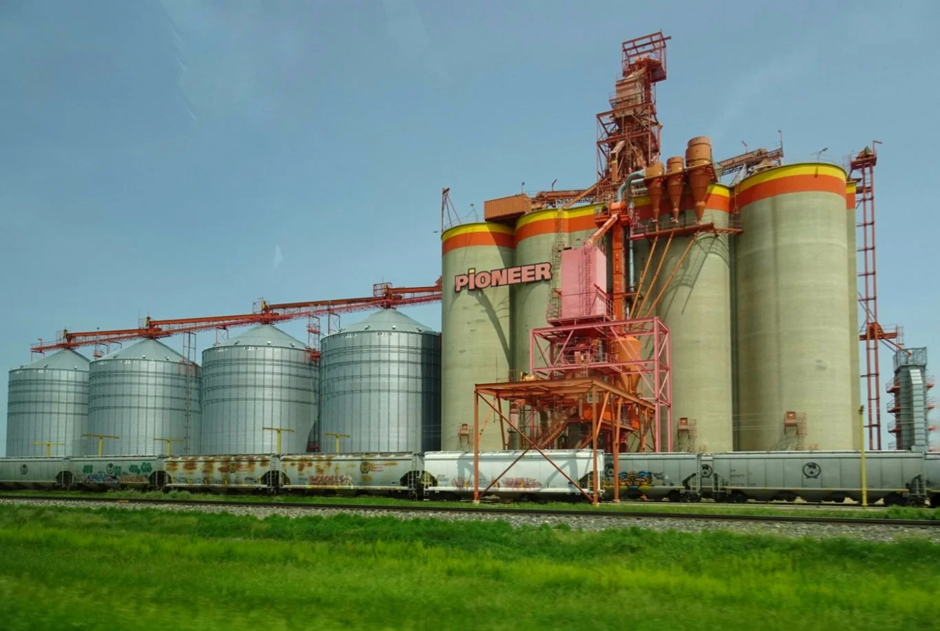 Every so often, we’d pass by one of these collections of grain silos by the railway line.