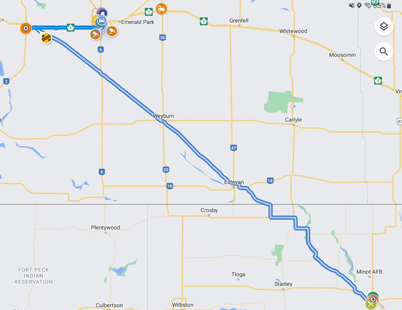 Anyhow, we set off on the ND52 this morning, heading for the border at Portal.