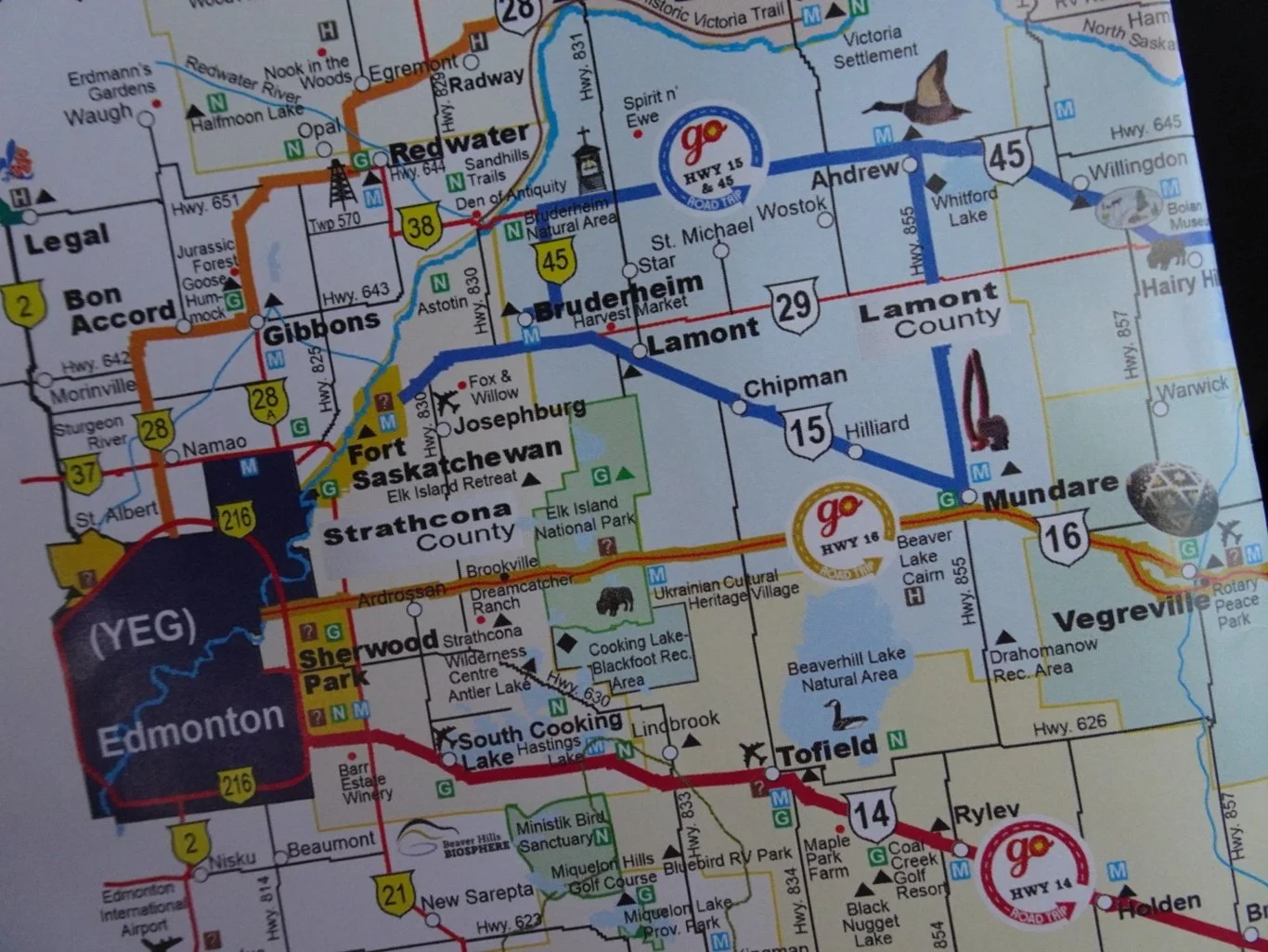Following along the Yellow Highway on the map, our next planned stop was going to be Mundare, where there was another “World’s Largest”. Perhaps you can guess what it is from the feature photo today? Or the marker on the map above?