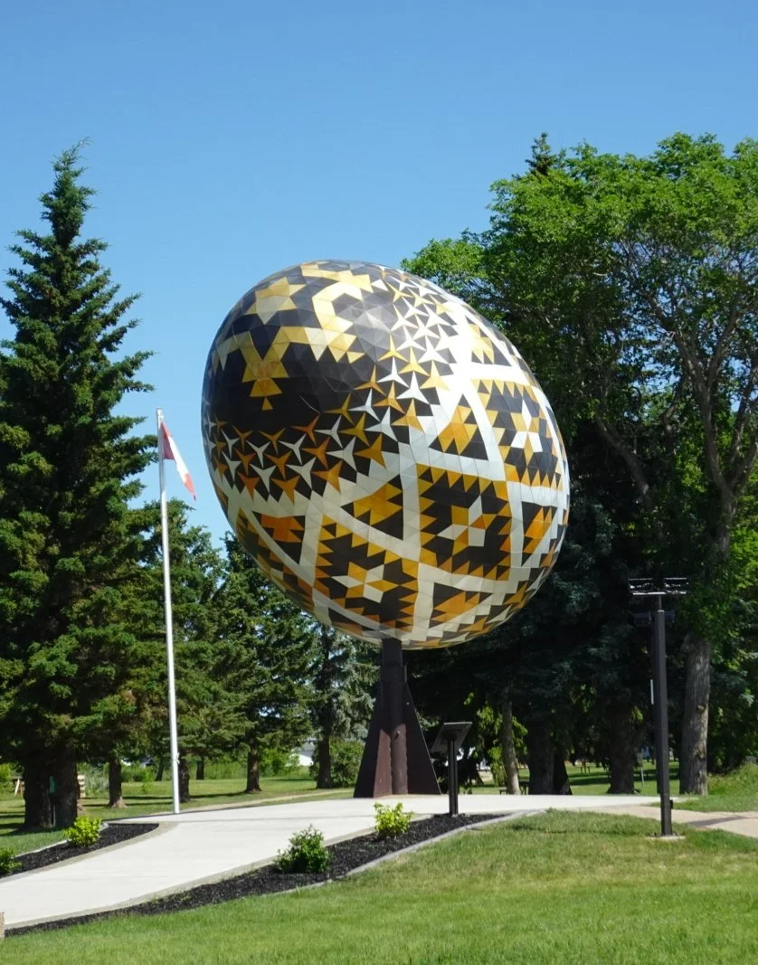 We had come to see the World’s Largest Pysansky egg! There it was, spinning on its stand…we looked, we photographed and we left!