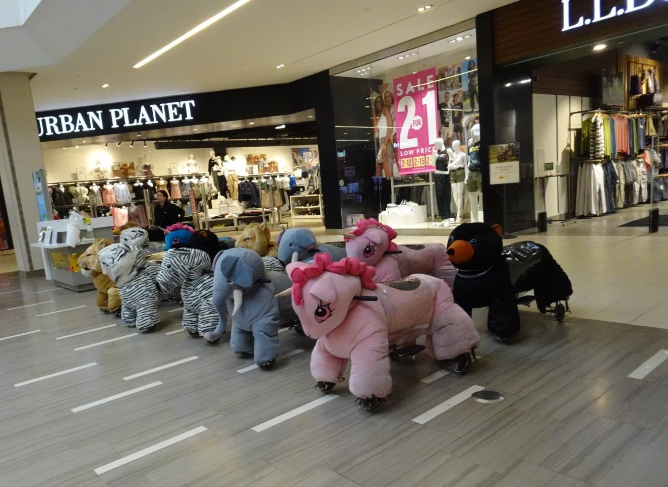 As we walked in search of a map/store directory, we reflected that one mall is so very much like any other, regardless of where in the world it might be. Though as we said that, a grown man rode past us on a lion…