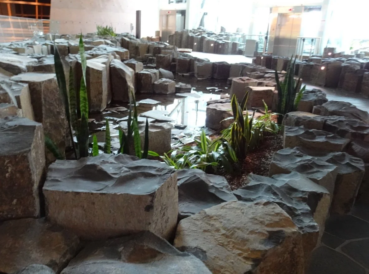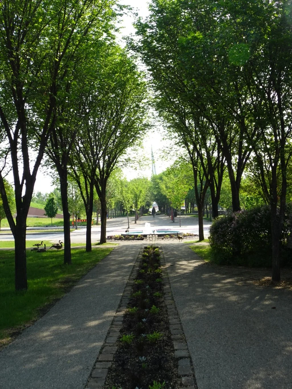 Our pathway continued through gardens with a small memorial fountain which was attracting the attention of a group of Canada geese. These big things gave me cause for concern, but with my Hero always in between me and the closest bird, I made it through the worst.