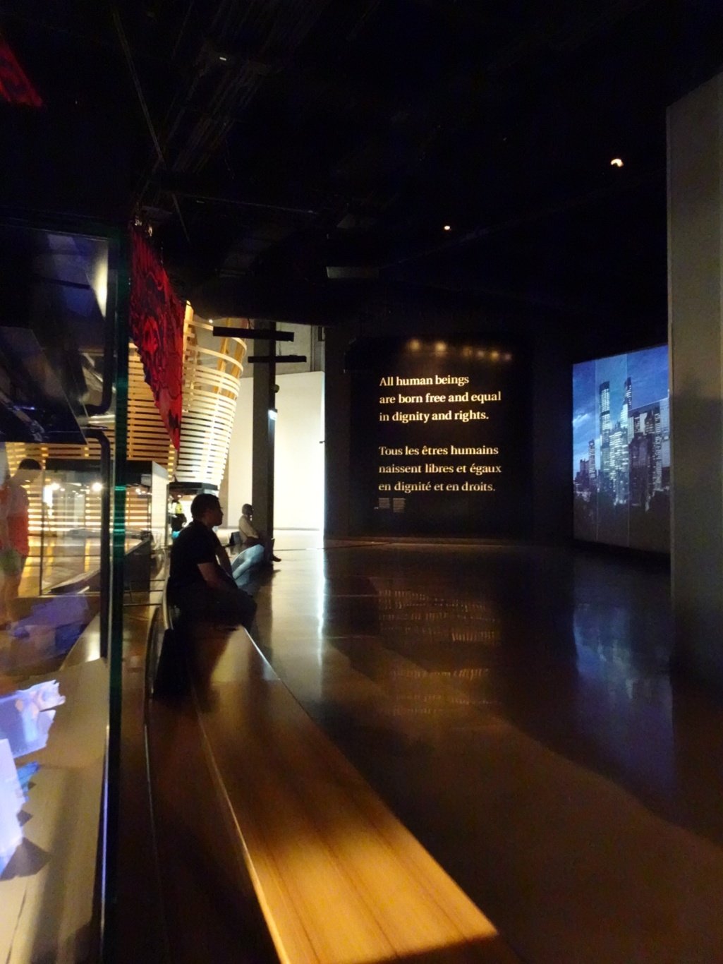 On the third floor was a “gathering space” surrounded by natural light in which “to contemplate your museum experience”. This floor focused on protecting rights in Canada, with explanation of the evolution of law here. Noting that the fourth floor was dedicated to the Holocaust, the Declaration of Human Rights and breaking the silence surrounding genocides around the world we decided to leave those weighty topics for another day and chose to head straight to the fifth floor where there was a cafe and a comfortable chair or three. There’s only so much serious thought one can take whilst on holiday after all.