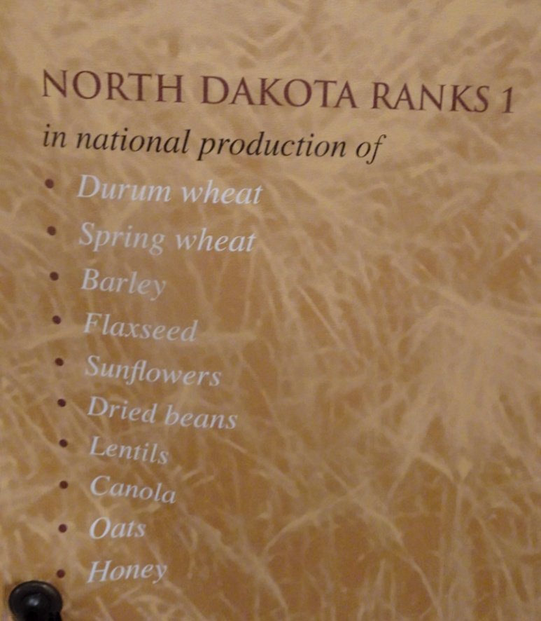 Around the other side of the carriage was a well constructed exhibit about agriculture in North Dakota and here we were able to find the answers to those questions we’d been asking just an hour or so ago.