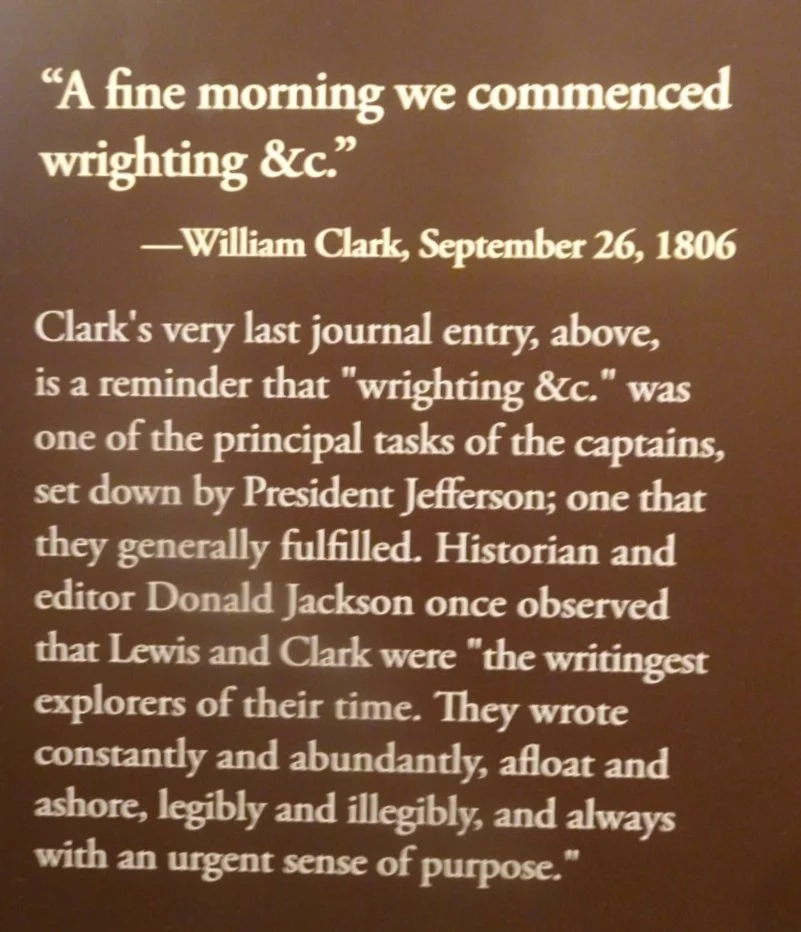 Inside, their story was well told in a very accessible style. The pair had spent the winter of 1804/11805 in Fort Mandan, just up the road from here, when they were heading west on their expedition up the Missouri and this particular exhibit focused on William Clark’s diligent journal keeping.