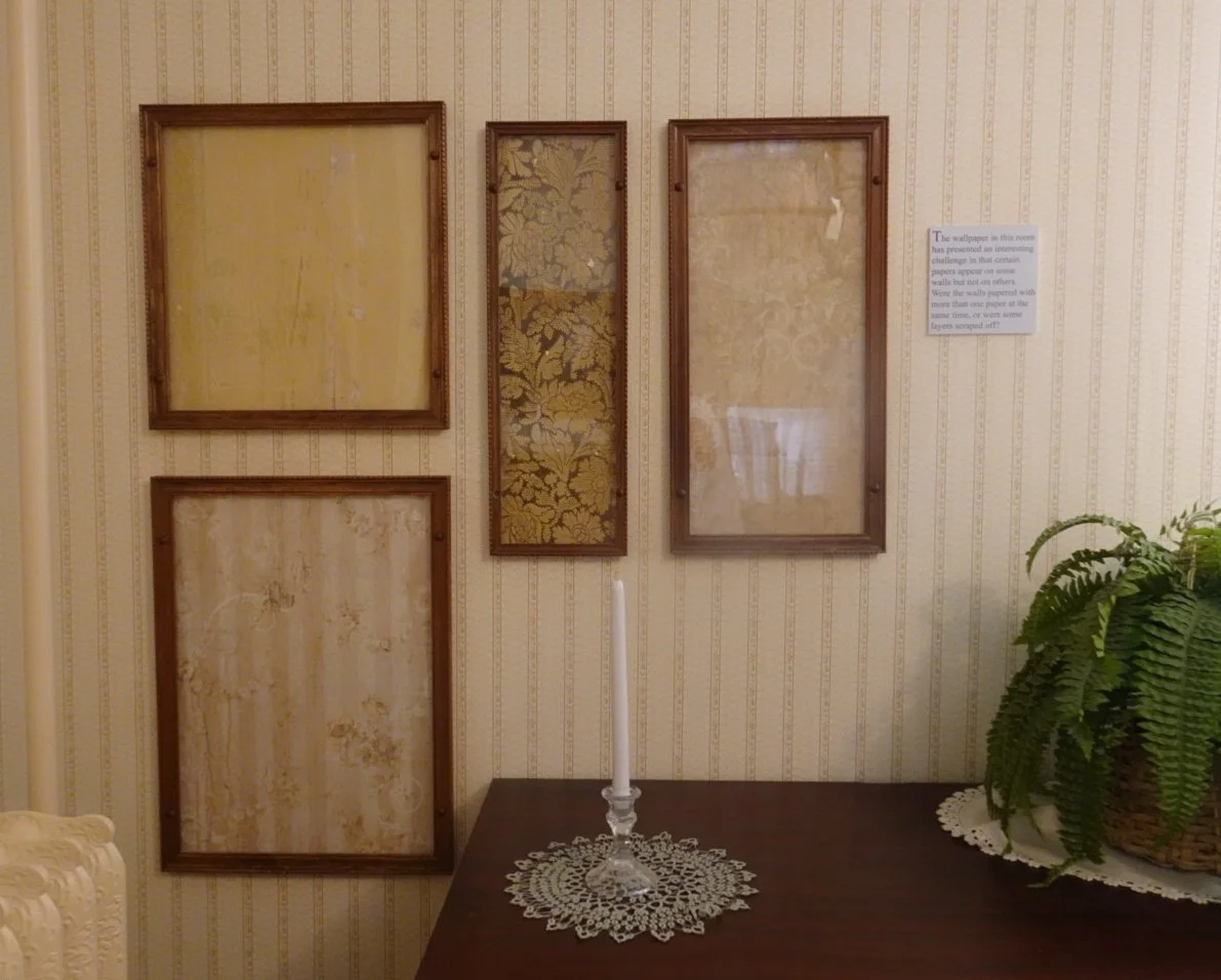 In particular, various wallpapers had been conserved in frames revealing the different choices of decor through the years. In most rooms, the original wallpaper had been recreated as a custom print by an artist and the result was very successful.