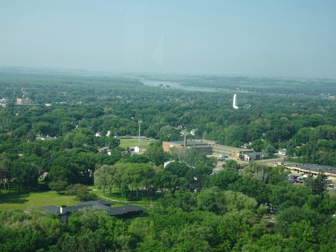 As we spotted the huge Missouri River in the distance, the Grandma standing next to us pointed out the Governor’s mansion to her grandchildren. The black roof of the recently completed home is easily seen amongst the trees in the front left corner and driving past later we got a different view of what appears to be a modern interpretation of a Frank Lloyd Wright style home.