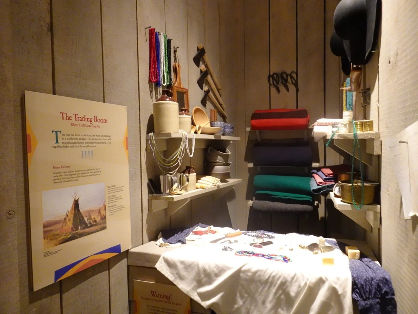 So although it was good to learn more about the Lewis and Clark expedition, I appreciated the “side show” of the museum just as much. I really liked this small corner showing how trading goods enhanced the life of the tribespeople here who found it possible to trade their wares for beads, woollen fabric and metal cookware.