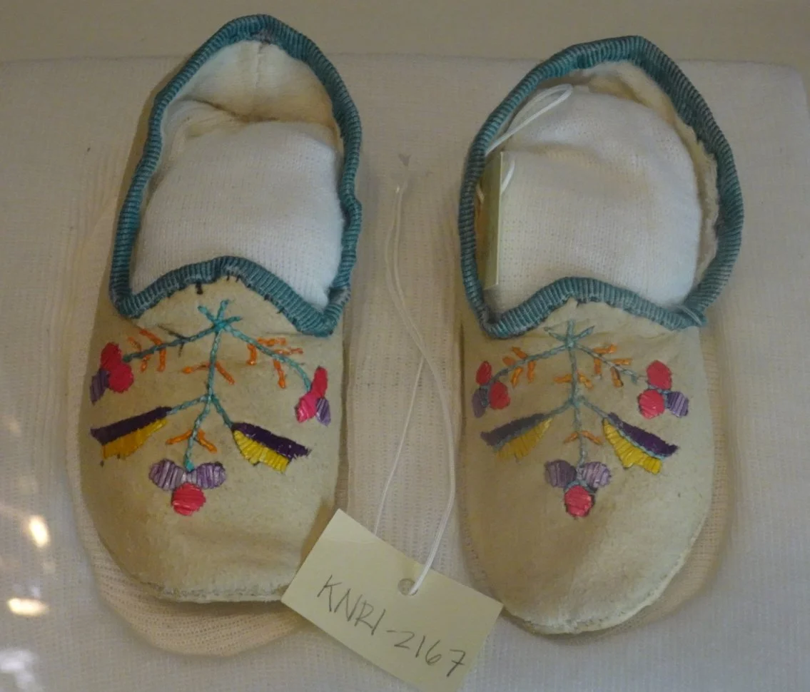 Keeping an eye on that sky, we hurried back inside, where I took a closer look at some of the remarkable things on display, including a pair of tiny shoes with some pretty embroidery on them.
