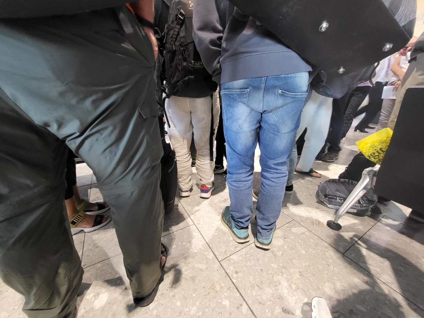 Our flight to Copenhagen was going to be full, we learned, so offers were made for those wanting to check in any hand baggage they might have and the usual messages of “we’re going to board this plane in an orderly fashion” were heard.