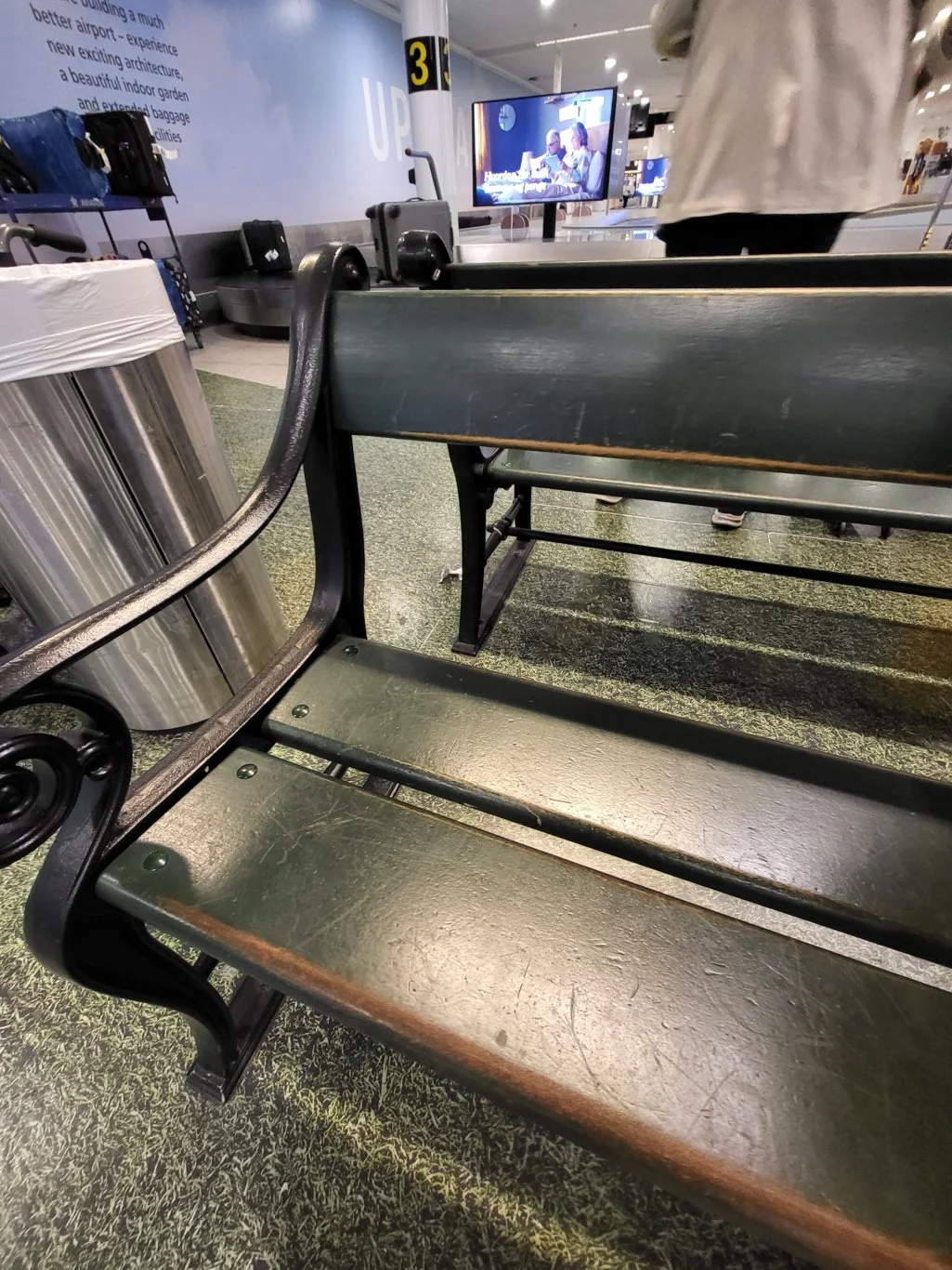 Thankfully our flight arrived safely, if ten or fifteen minutes late, and we waited in the baggage hall for our luggage, appreciating the Copenhagen benches!