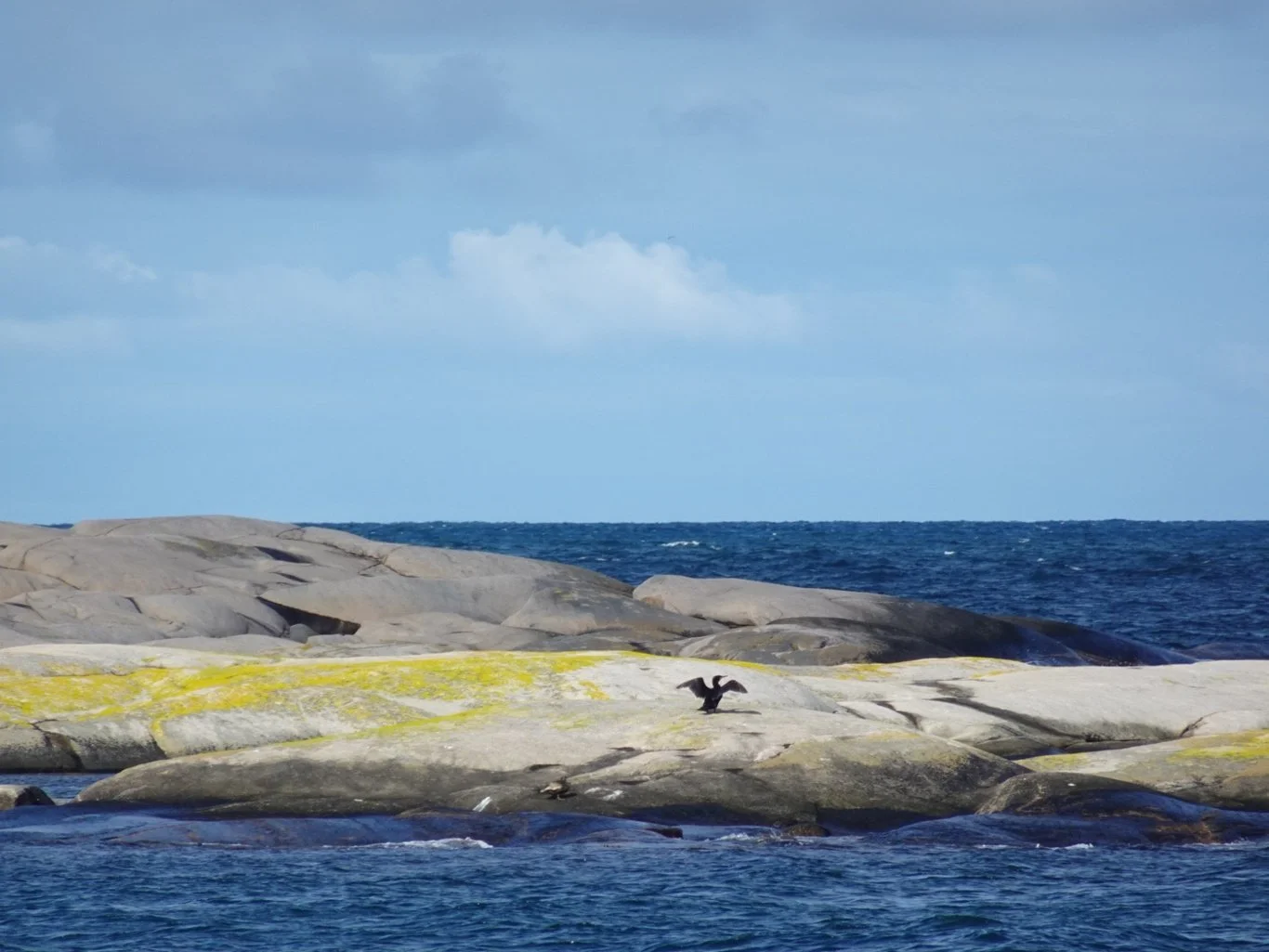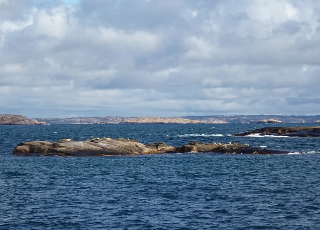 Well, who’d have thought it?! Our optimism was rewarded with a bit of sunshine too! We sailed further into the Gullmarn fjord, which we learned is a true fjord with steep sides and a very deep channel. We learned too, that it has a threshold; a kind of “doorstep” at the entrance which prevented ships with a large draught from entering the fjord proper, meaning that Lysekil was never spoiled with an oil terminal or similar.