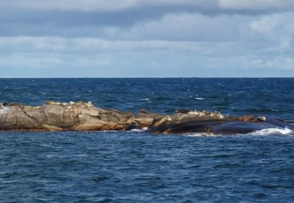 We didn’t have to go very far - a couple of km - to the boat which would take us on the “Seal Safari” we’d planned for this morning. We climbed on board, receiving a warm welcome from Yvonne and her husband there at the wheel and made a quick decision - was the weather fine enough to sit up top in the open air?