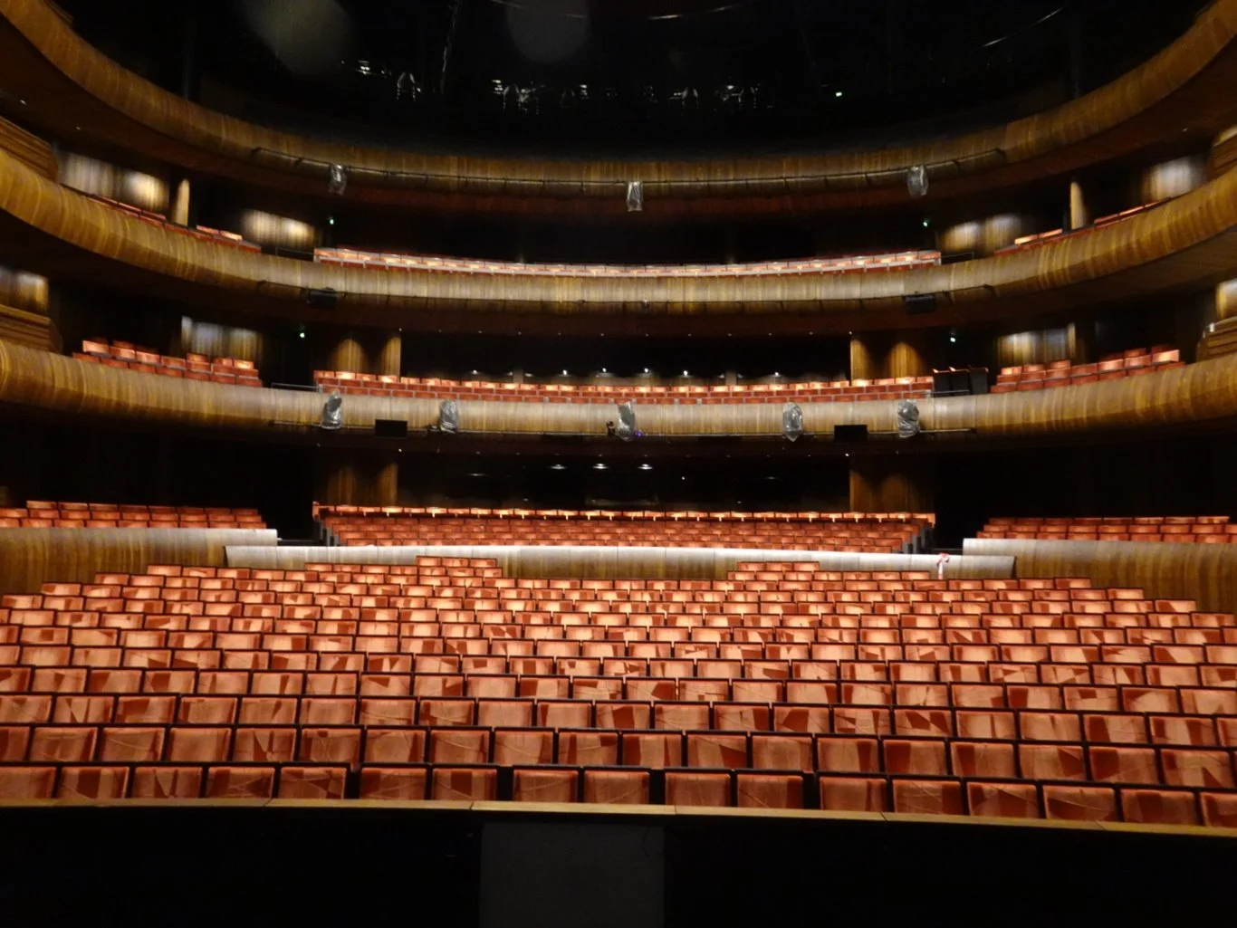 We noticed the acoustic, because people were working in the balcony and the smallest squeak from someone’s ladder echoed around the empty space. Katherina also pointed out the chandelier (photo above) made in the glassworks which we’d been scheduled to visit today before we changed our minds. Especially designed for this location, the chandelier and its thousands of crystals was acoustically neutral and whilst on the subject, she went on to talk about the adjustments needed to accommodate the many performances requiring a variety of technical acoustics. Designing and building an opera house in the 21st century involves so much more than creating a wonderful space in which to perform to an audience!