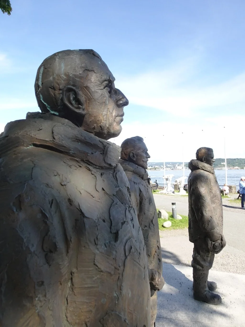So much to see and in a short time, impossible to catch it all. In true Thomas fashion, we were at the meeting place early though, so I ran over to get a picture of the five bronze figures standing by the fjord, overlooking the water.