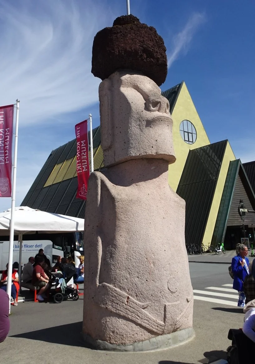 After this whistle stop tour through another fascinating story, we met Annie by the Moai, the Easter Island figure outside, ready to cross over to the third and final museum just behind it.