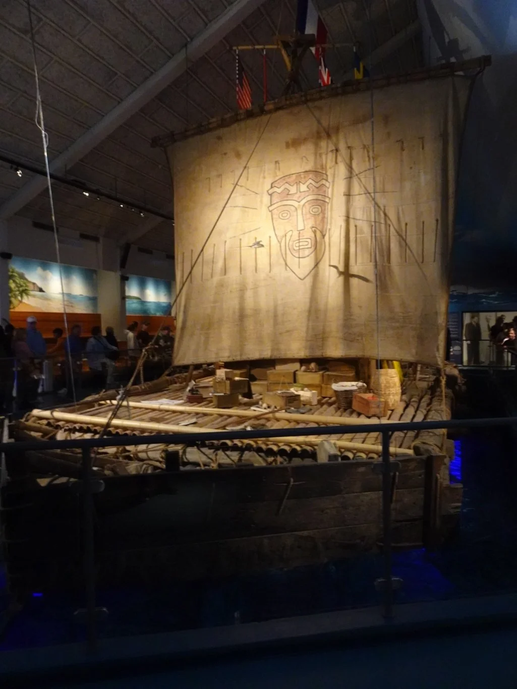 Our first impression was that this “raft” was huge. Too big to fit in my camera shot (and the museum is so tight that it’s impossible to step back any further to get it all in!) Just imagine, this boat had sailed across the South Pacific Ocean, from Peru to French Polynesia and here it was, all these years later looking in pretty good shape.