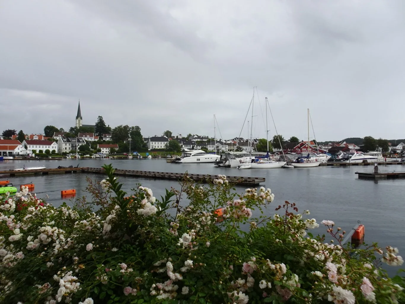 By the time we reached Lillesand, it was raining quite heavily. We donned our raincoats, put up our hoods and debated whether to join Nils Henrik on his guided walk or to go it alone, deciding that, in view of the weather, we’d go it alone and spend the hour we had here in a cafe if need be.