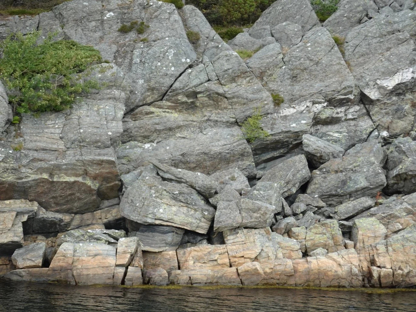 At times we sailed close to the rocky coastline; close enough to admire the strata of the rocks, described by Nils as “the foundation of Norway”.