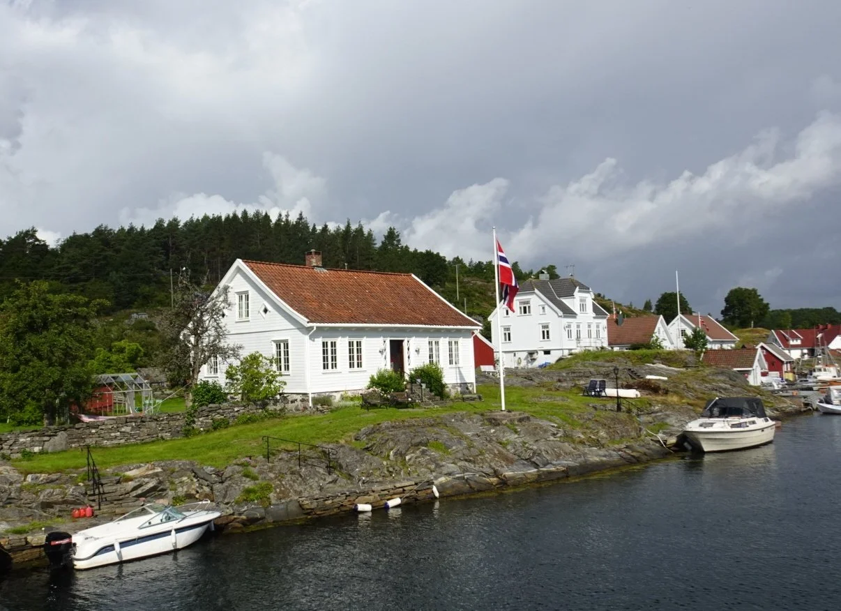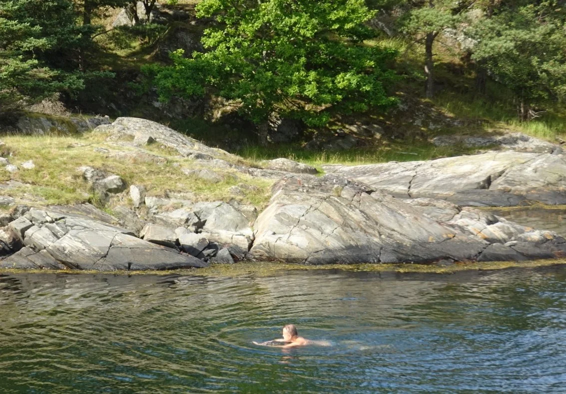 We were now sailing in a small arm of the fjord where there was quite a community of both holiday homes and year round residents. Nils pointed out the old schoolroom, where children were expected only every other day when their number increased and there wasn’t room for everyone to attend on the same day.