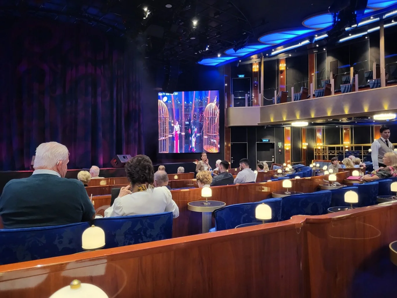 There was no doubt that we’d go to the theatre for the show this evening, either. The last performance from Isabel Commandeur, an excellent singer from the Netherlands who we’d heard before and very much enjoyed. She’s going home from Scotland, so there will be someone else on the programme tomorrow.