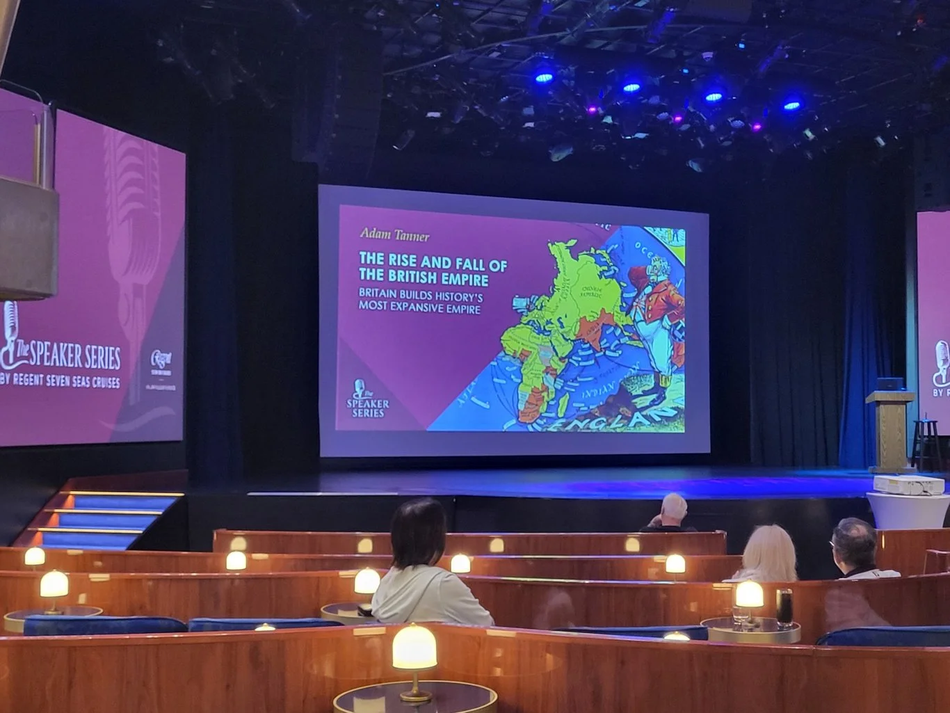 This morning, we’ve attended a lecture given by Adam Tanner, about the British Empire. Though factually correct, it was a little judgemental and lacked historical balance, but it was professionally delivered and clearly well researched. A few hours free time gave us chance to catch up with friends, to potter about a little and go to the future cruise presentation as well. Sadly, we didn’t win the prize draw!