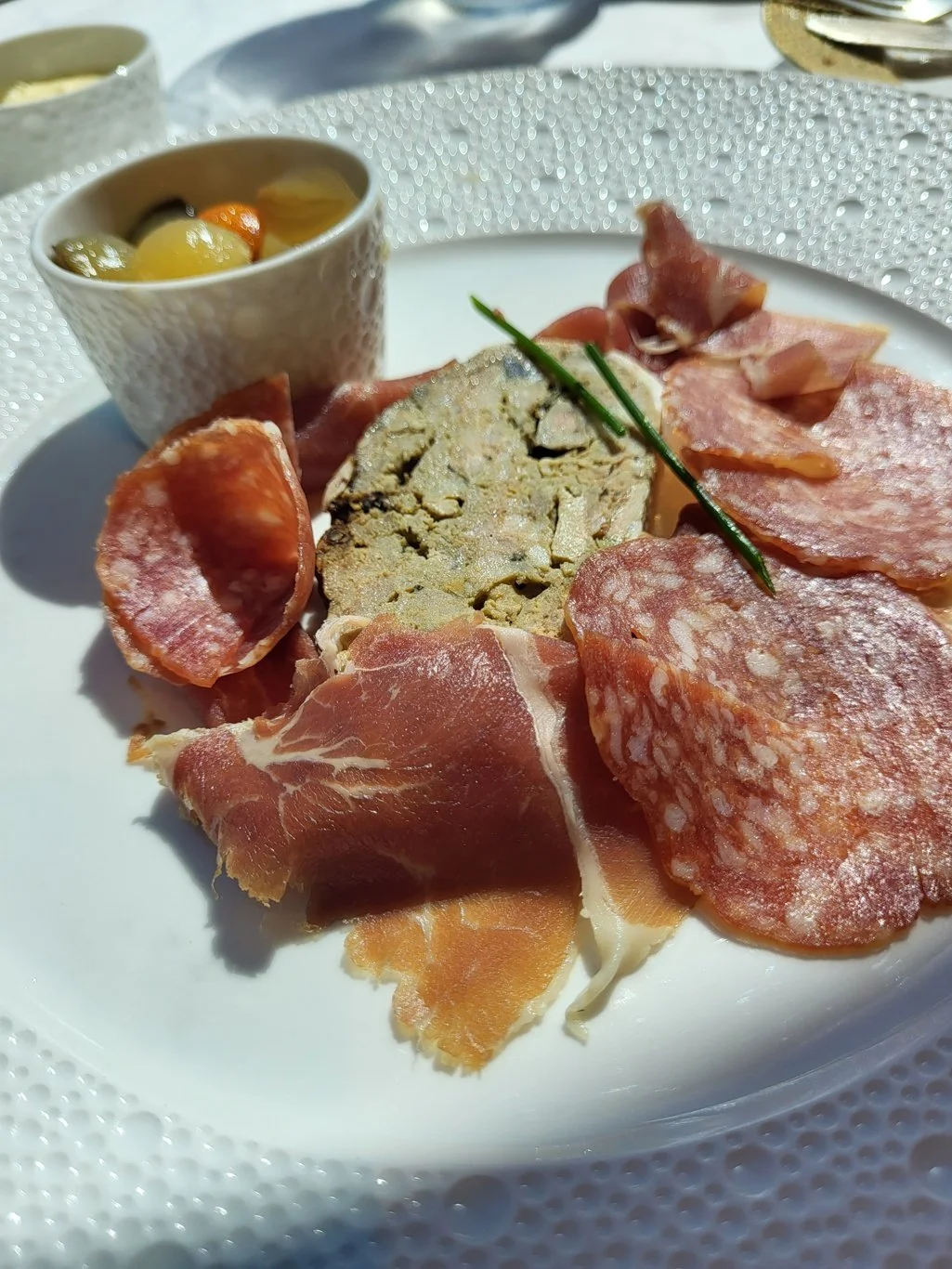 For lunch, we decided to dine in Chartreuse, where we were seated at a wonderful table overlooking the stern of the ship. A plate of charcuterie and a glass of Sancerre was a great start.