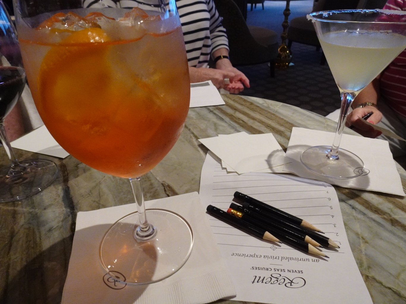 At four o’clock I spotted the first of our lovely Trivia team arriving, so the needlepoint was packed away and I went over to join our friends. Many of our Trivia teams on previous cruises have been the stuff of legends and we count some of our dearest friends amongst the members of them. This one too is pretty amazing - we joined four funny, clever people and have laughed our way through the sessions so far.