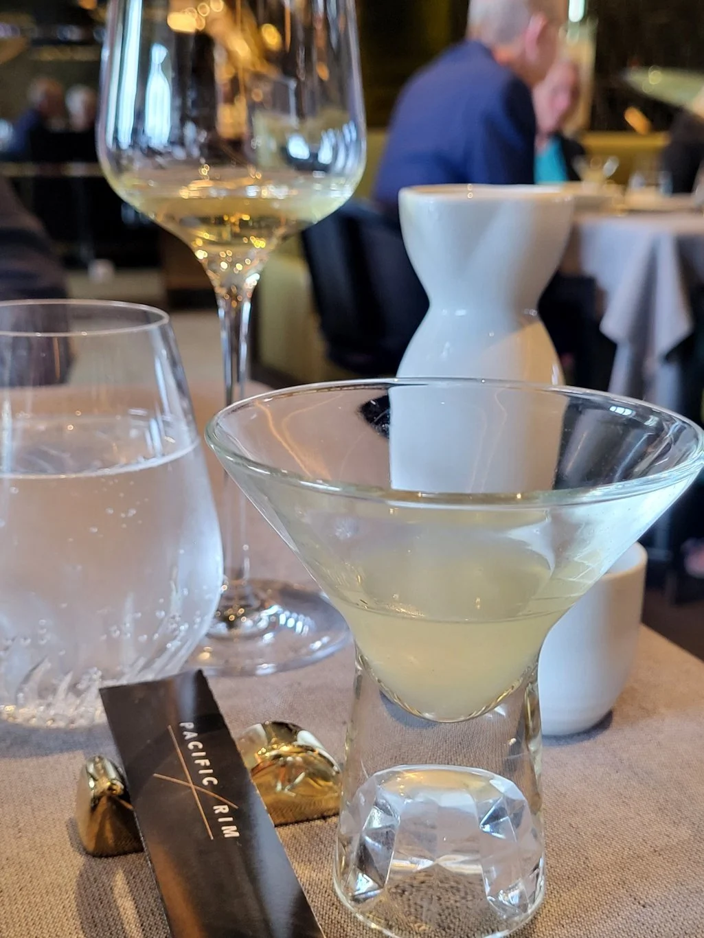 A martini for me and a margarita for him. We were dining à deux this evening in our favourite Pacific Rim, the pan Asian restaurant and were very much looking forward to that.
