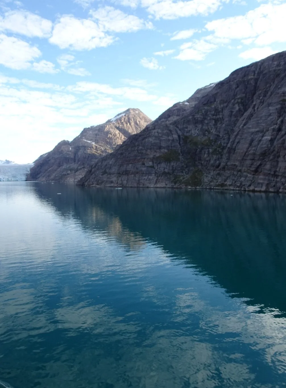 We continued to make progress through the sound, turning through a series of fjords around a network of islands. At times, the Captain manoeuvred the ship as if it were a small motor vessel, for it seems to turn so easily, without any undue bother. He had already commented that this class of ship makes it so much easier to get really close to the glacier - we’d been less than half a mile away from it without so much as a ripple in the water.