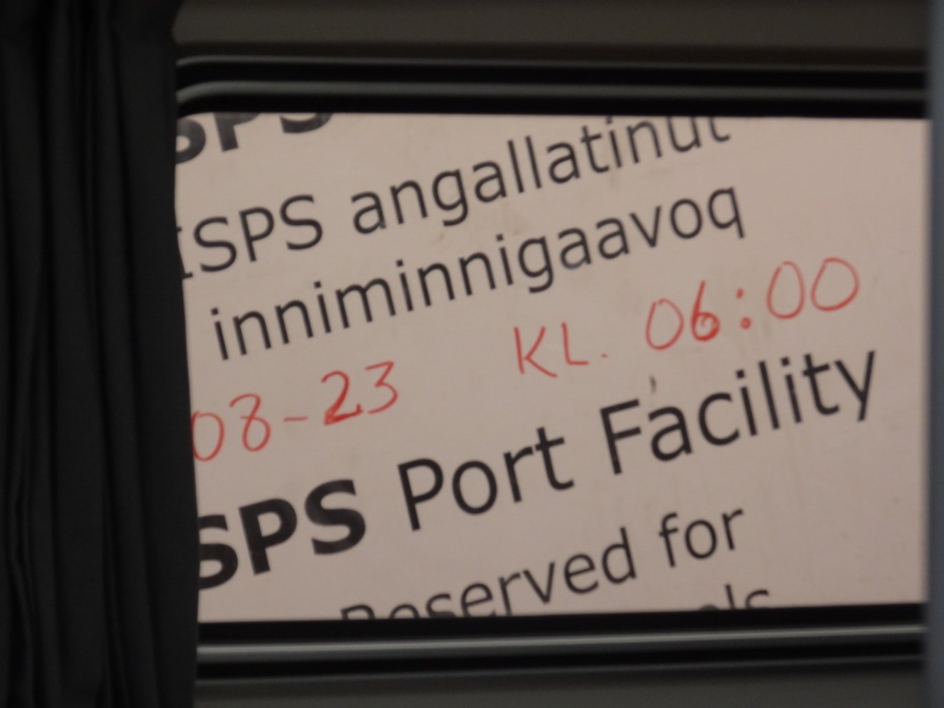 We carried on to the pier and hopped onto the tender boat back to Splendor. As we did, we spotted one of those Greenlandish words again. According to my translator, inniminnigaavoq = reserved. Another word for my collection.