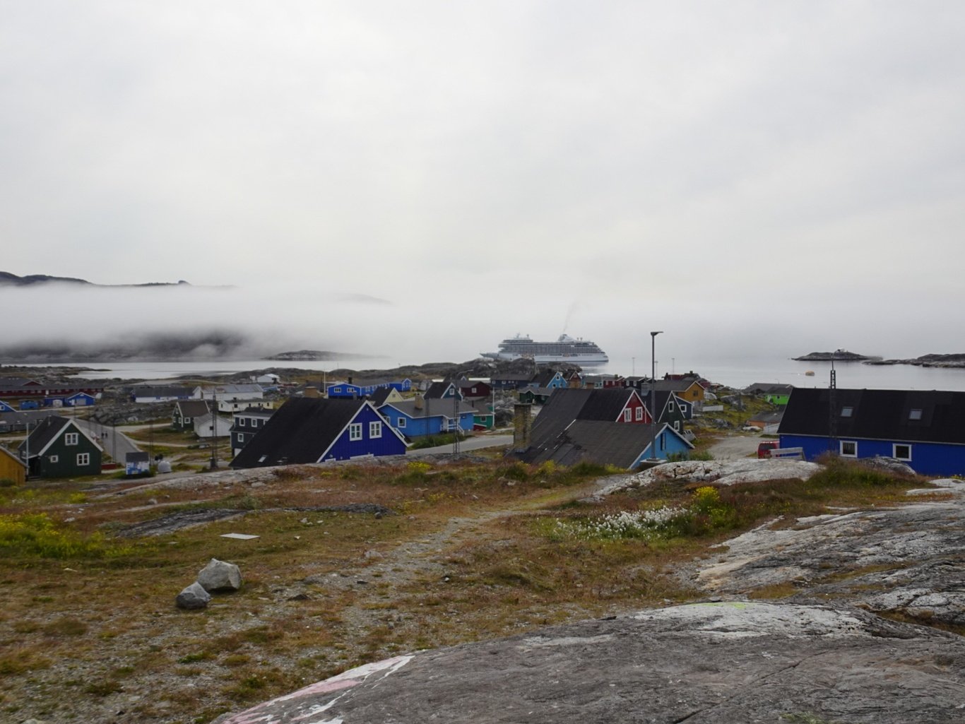 We were in Nanortalik today, our last port of call in Greenland. Mind you, we could have been anywhere when we opened the curtains, for it was a completely white and foggy world outside.