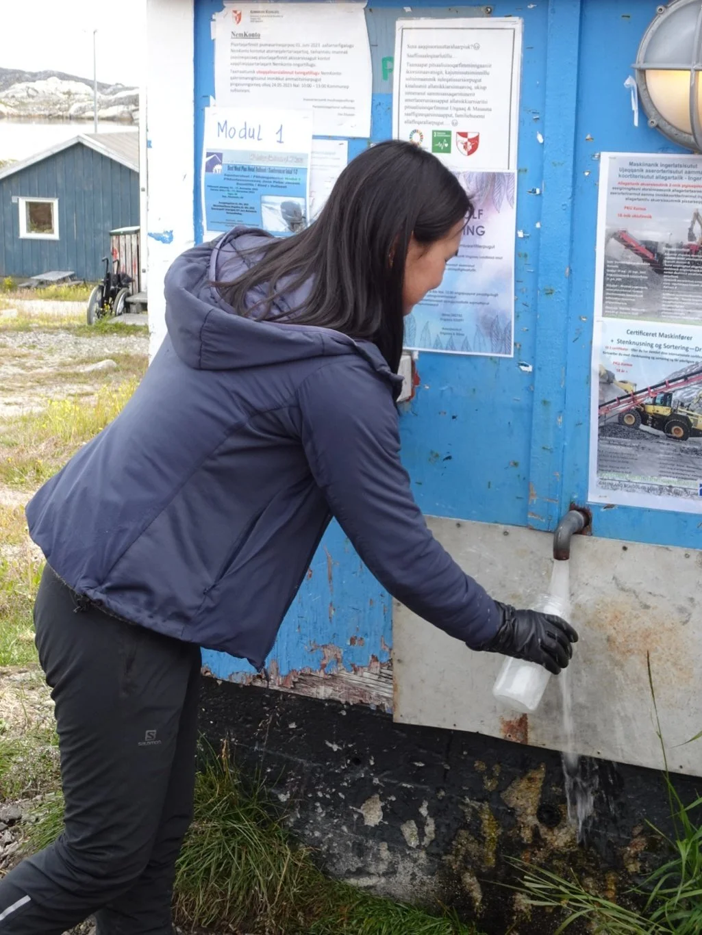 The answer came when Inni pressed the button and filled her water bottle. She explained that many of the houses here don’t have running water and these blue huts around the town are communal “wells”