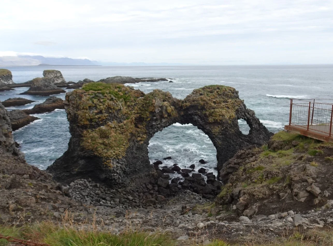 Our next stop was Arnarstapi where we gathered at a viewpoint high above a small fishing harbour. To the left of here was a curious arrangement of rocks.