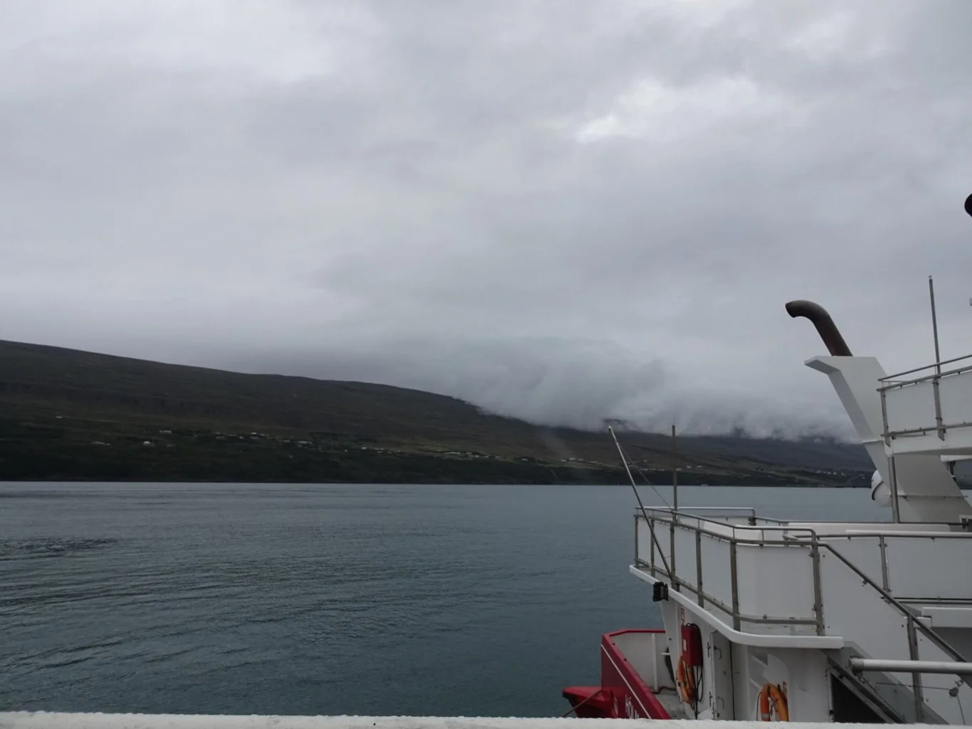 Today we sailed into the Eyjafjörður Fjord in search of whales. Splendor had docked in Akureyri early this morning alongside our companion from Ísafjörður yesterday, Mein Schiff 3.