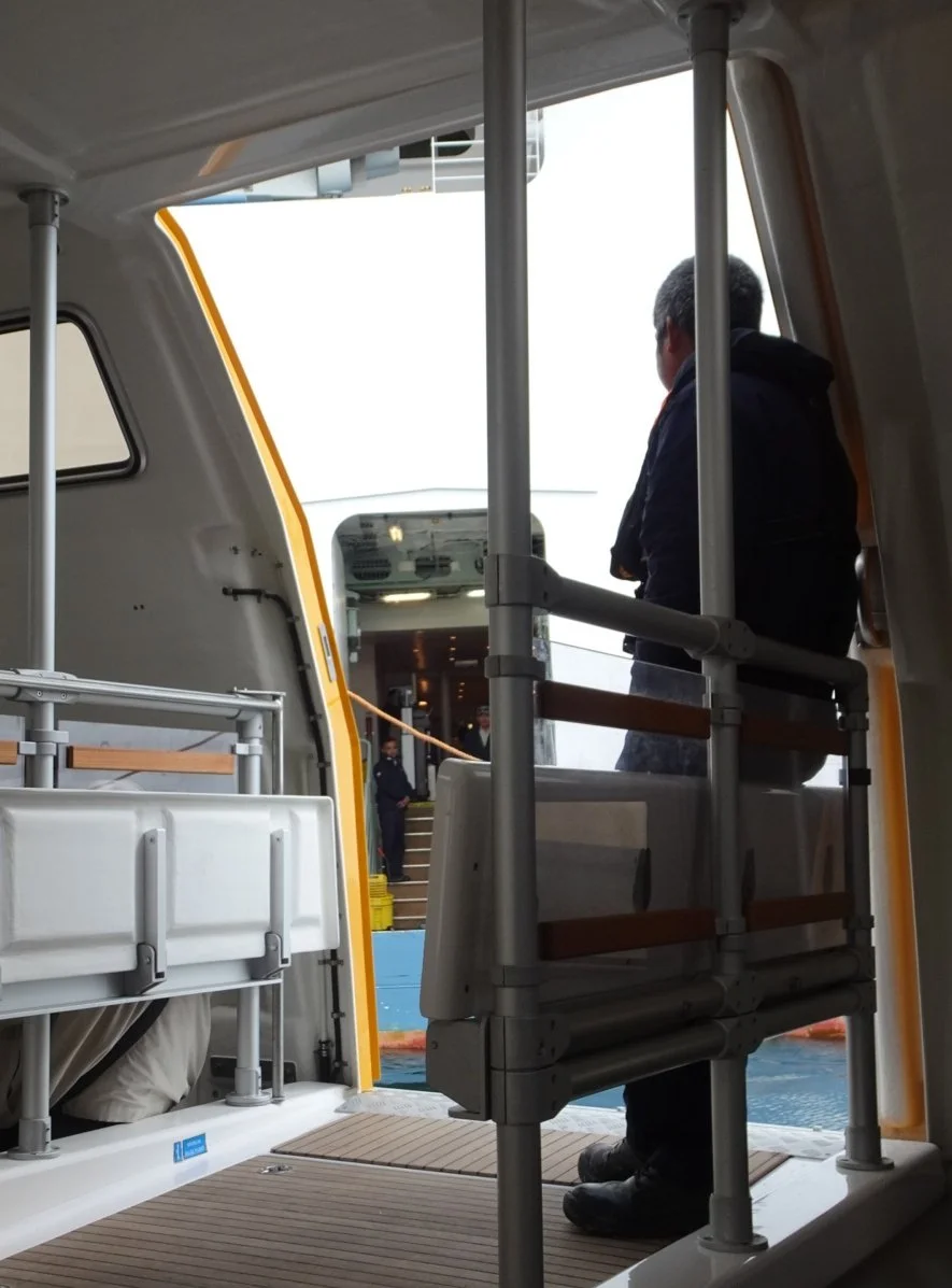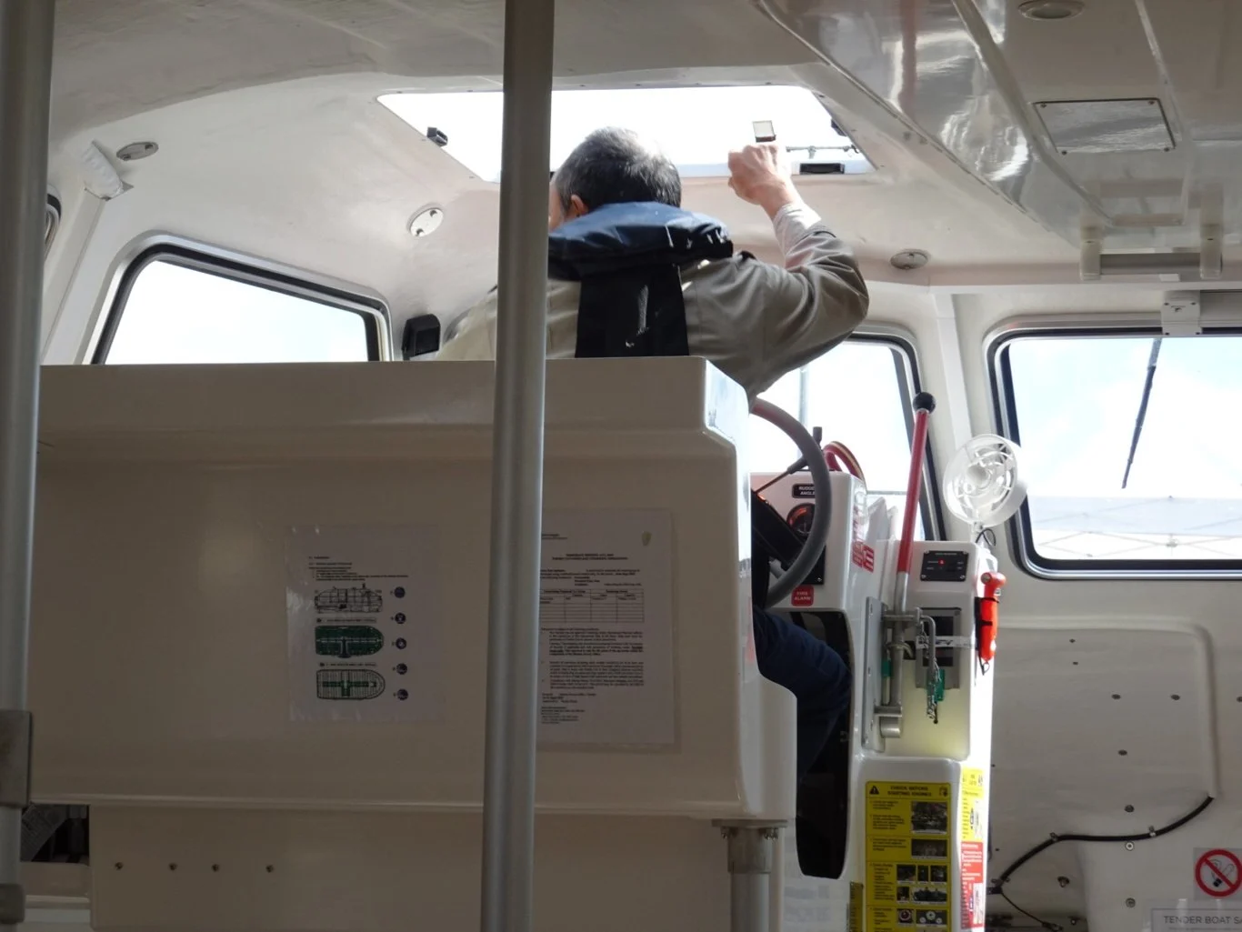 Just six of us enjoyed a peaceful ride back then, with the young crew member who had been serving drinks on the pier returning to the ship at the end of his shift as well.