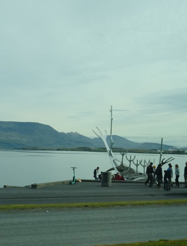 We drove past the Sun Voyager sculpture, where I managed somehow to squeak a snap in between all the parked cars!