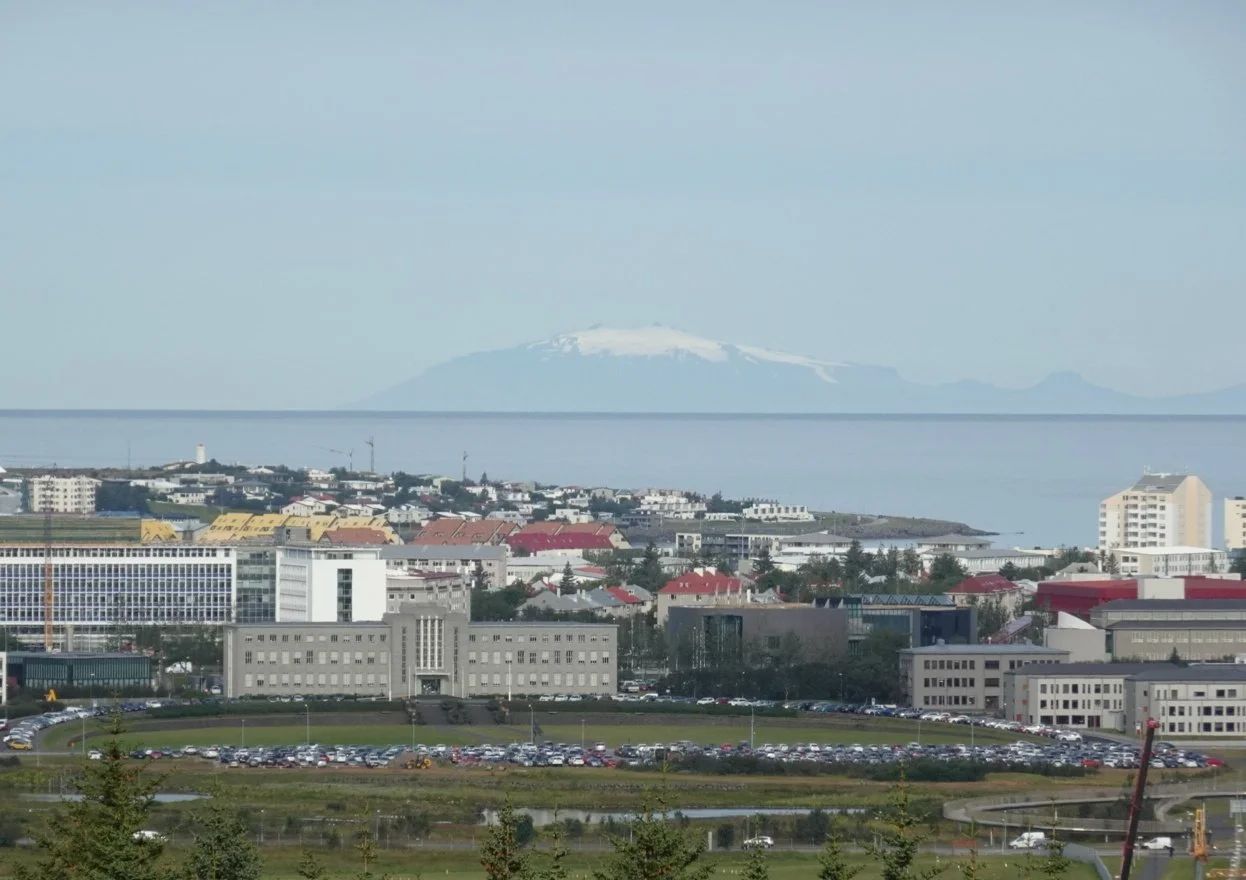 Julius appeared at exactly the right moment to confirm the sight of a snow-capped volcano on the horizon. It was indeed Snæfellsjökull , familiar from our visit there with him a couple of days previously. His appearance was a reminder of the time too - making our way downstairs might take a while given the crowds and we didn’t want to be late.