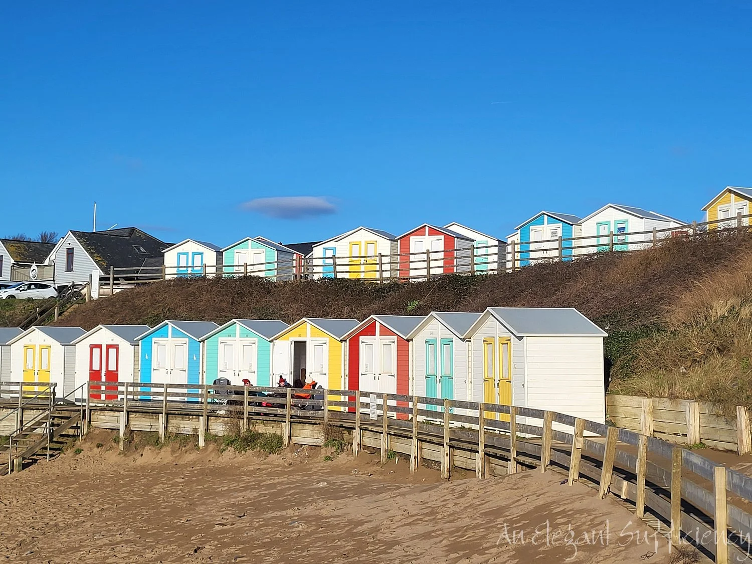 Sunday afternoon in January by the English seaside, which could almost be mistaken for California…except here we wear hats, coats and gloves to the beach!