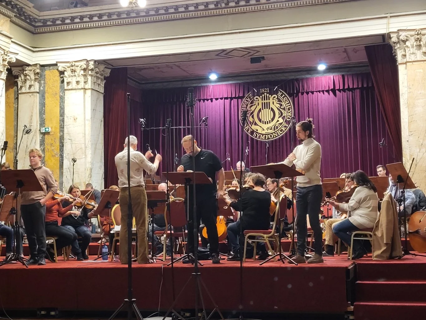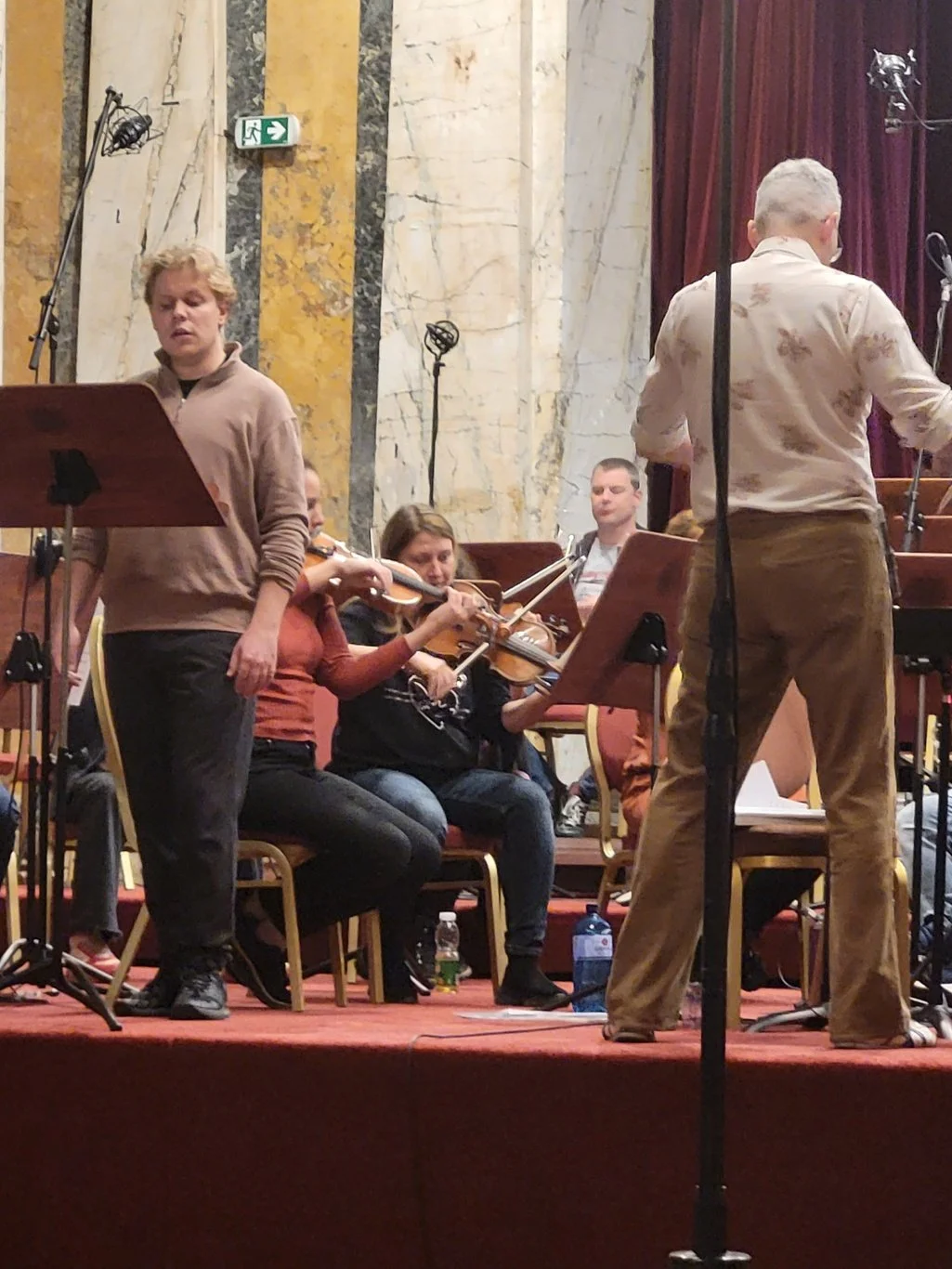 The orchestra quietly get on with things without much direction at all, but “two small things” require attention. Dario speaks to a couple of players and they return to play just a few bars part way through. At 9.32am, he says “Thank you” and it's done. The duet is in the bag.